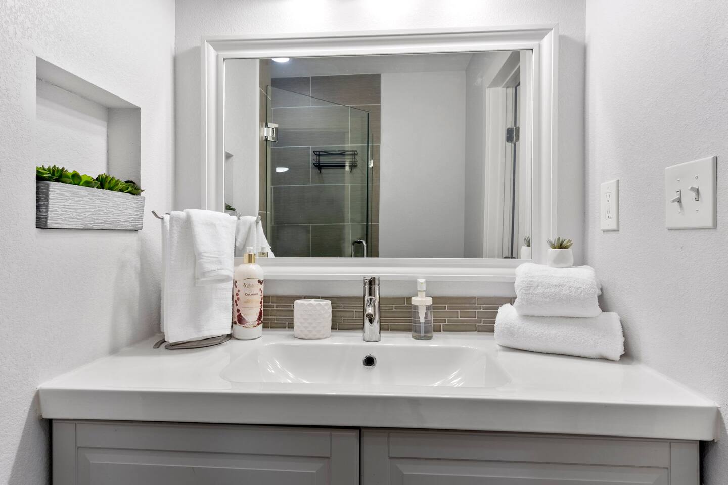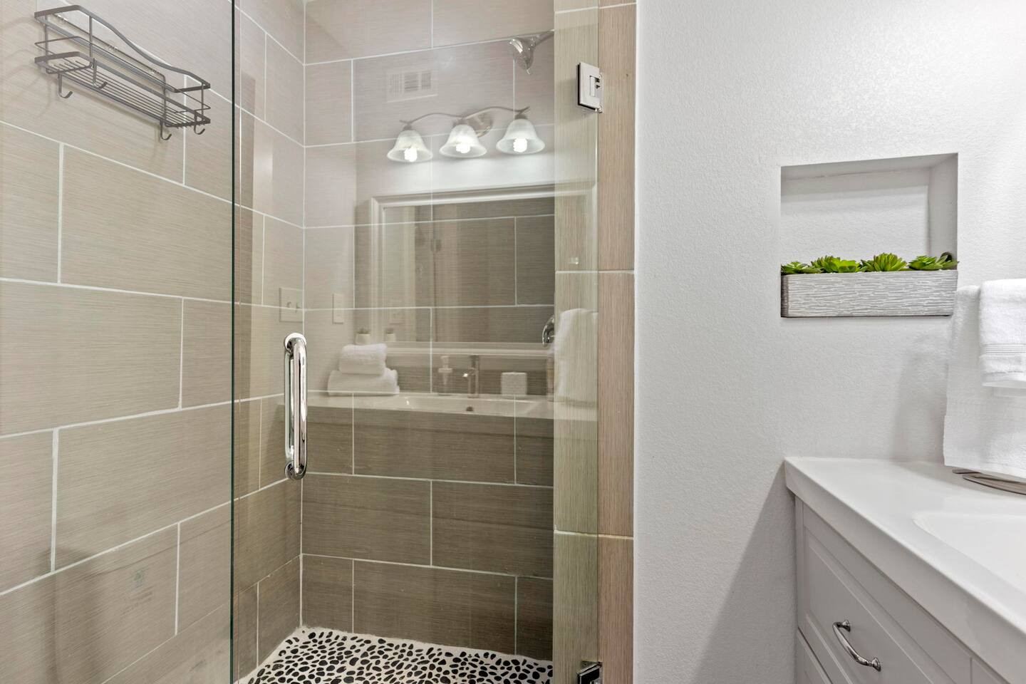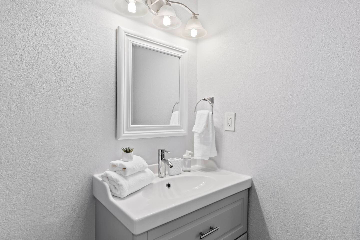 The condo features two full bathrooms. There's plenty of essential toiletries and fresh towels at your disposal, so you don't have to worry about bringing your own.
