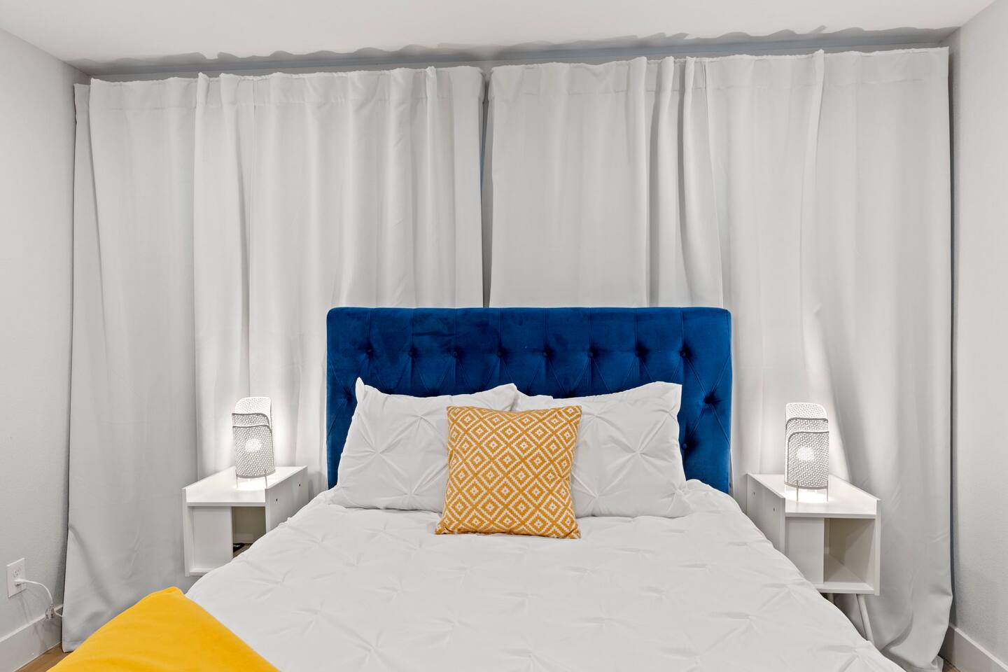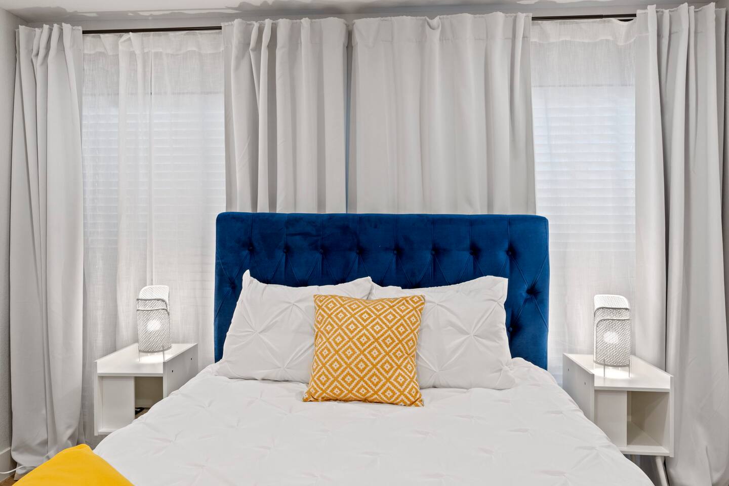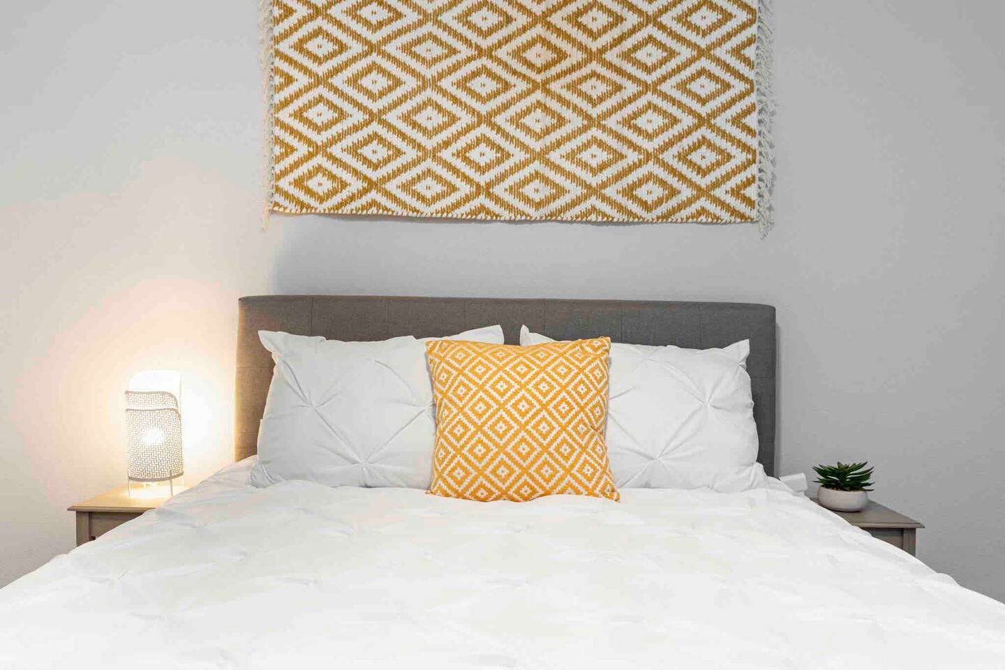 ✔ Queen-Size Bed with Pillows, Linens, and Sheets