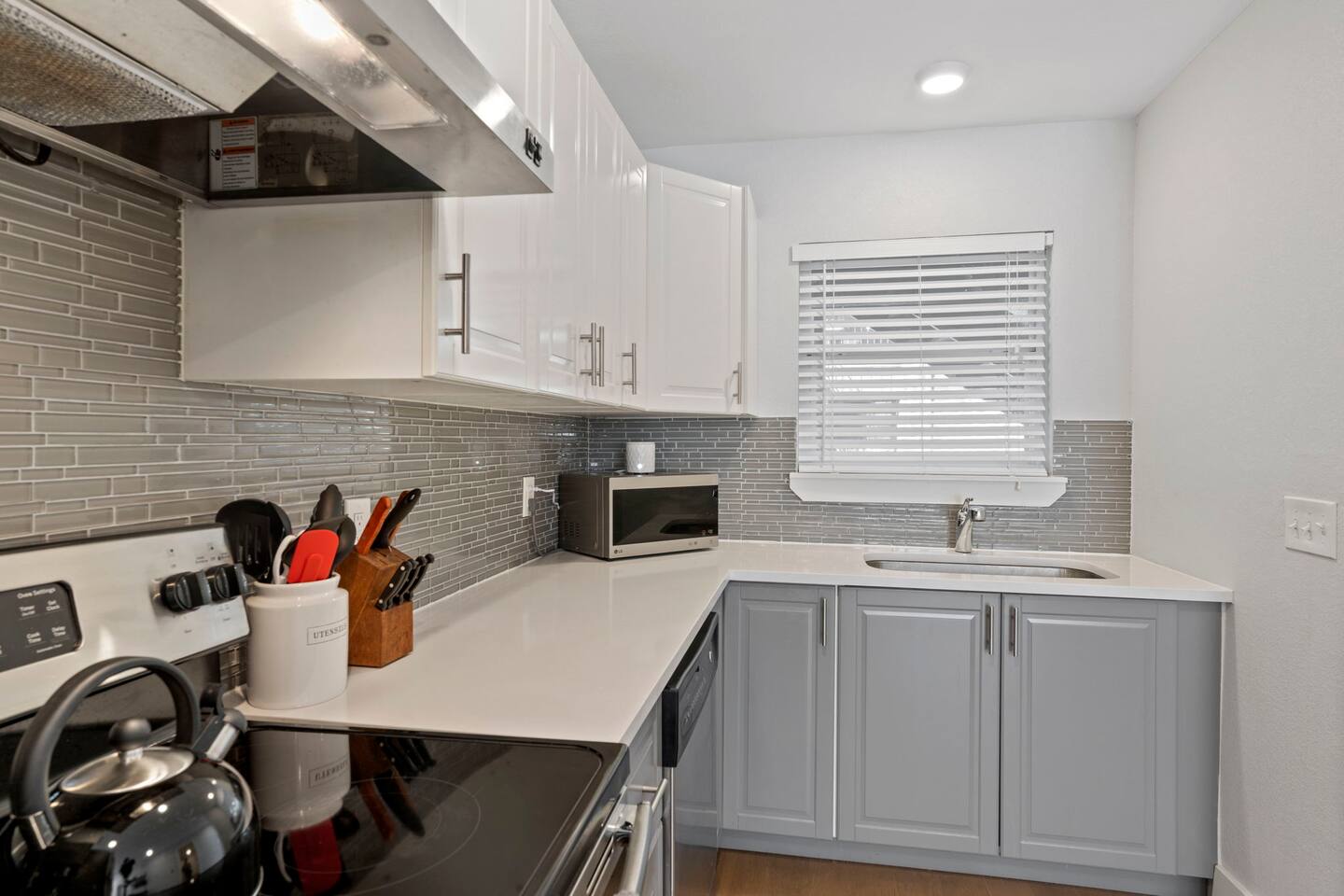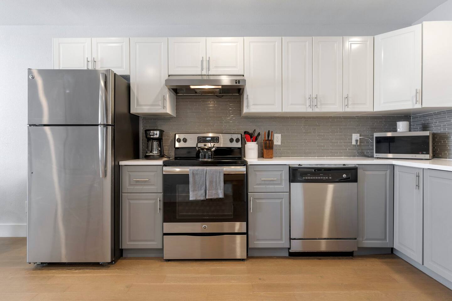 A beautiful updated kitchen with hardwood cabinetry, state-of-the-art appliances, and spacious countertops will satisfy all your needs if you decide to prepare some delicious dishes.