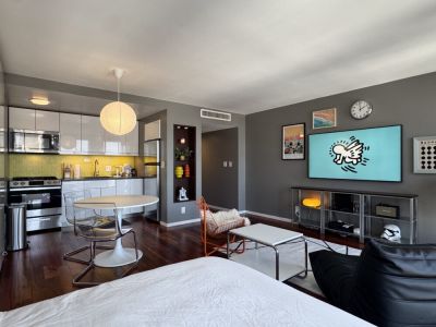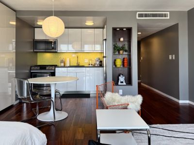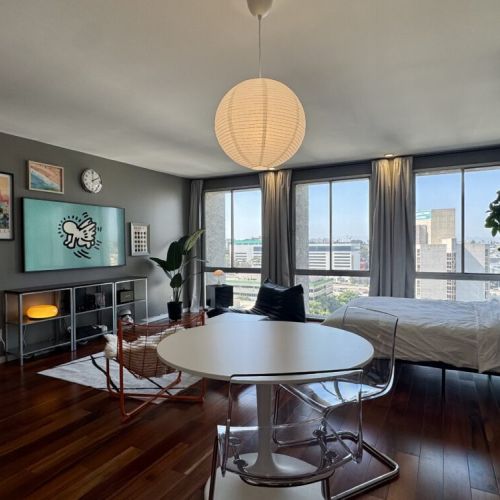 Experience resort-style comfort and convenience in one of Los Angeles’ most iconic full-service high-rises. This fully furnished studio offers both comfort and character, featuring modern amenities and carefully selected décor pieces. You’ll find high-end touches throughout the space — including a PlayStation 3 for entertainment and a $300 designer lamp that adds a refined, cozy glow to the living area