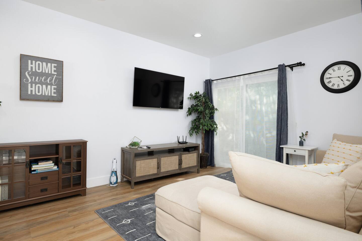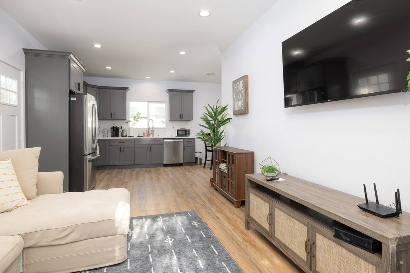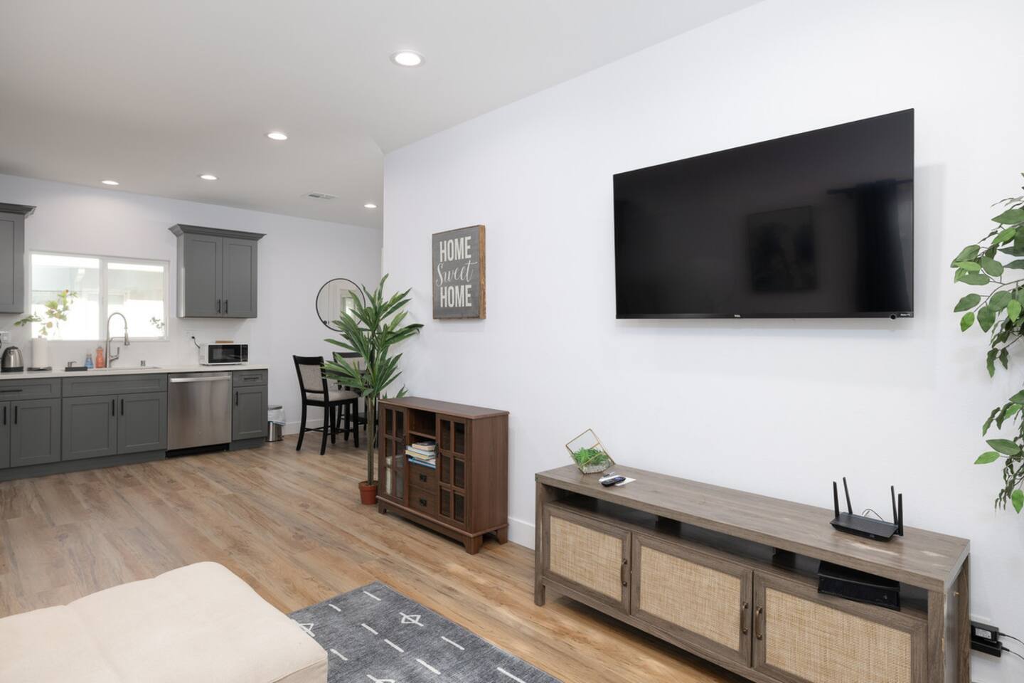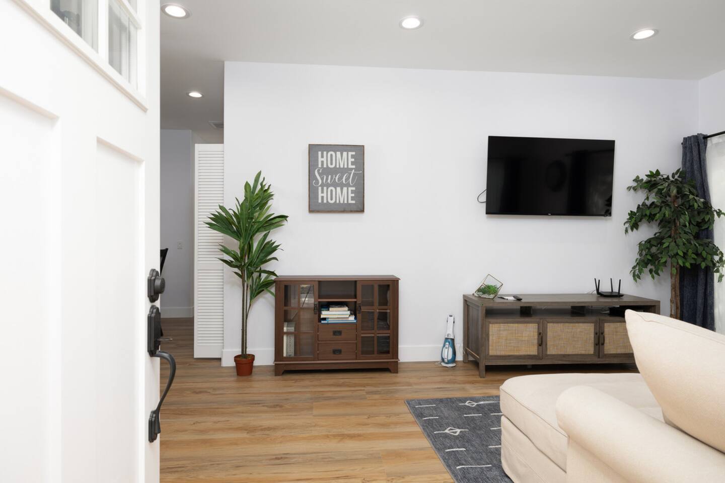 - Smart TVs in living room and two bedrooms