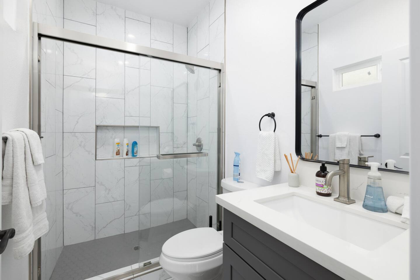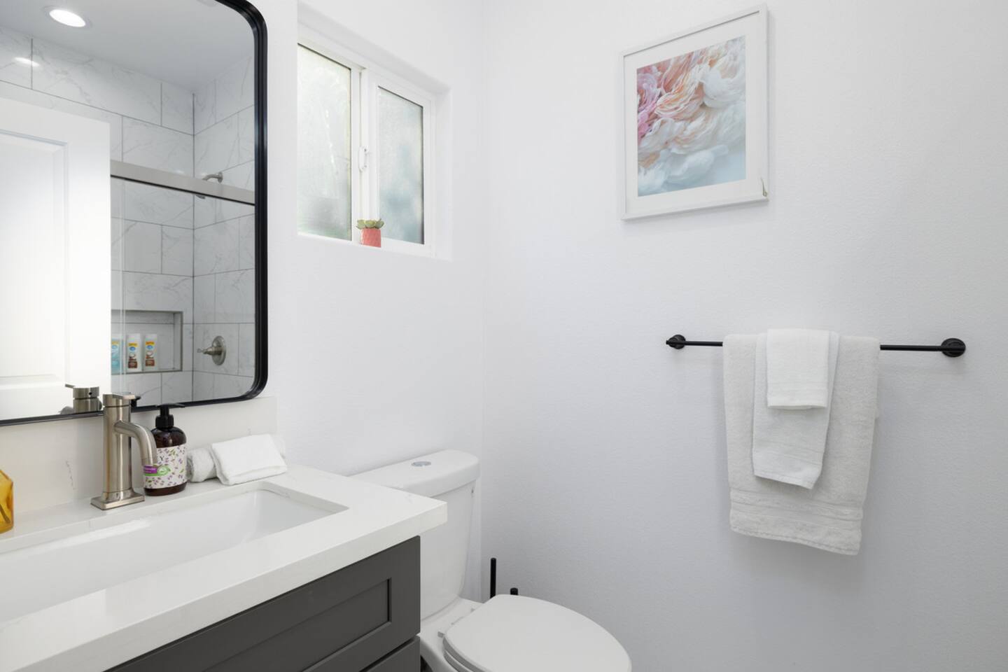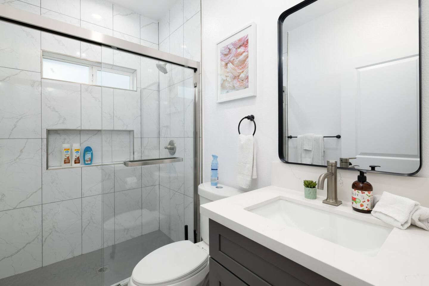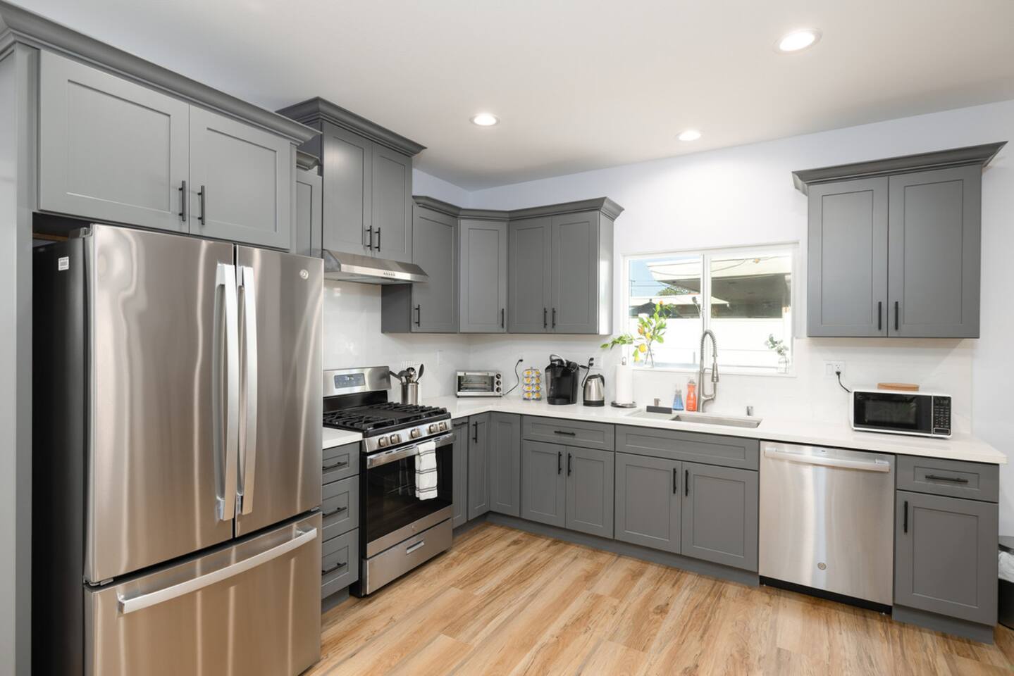 A newly built contemporary home with plenty of sunlight, kitchen equipped with a gas range and stainless steel appliances, and bathrooms for everyone! Whether you are here to work, retreat, or gather with your loved ones, this home is spacious and comfortable to wind down in. Located within walking distance to restaurants, shopping, and entertainment, you are luckily also tucked away into a quiet neighborhood. 🙂