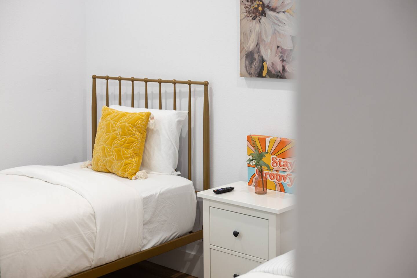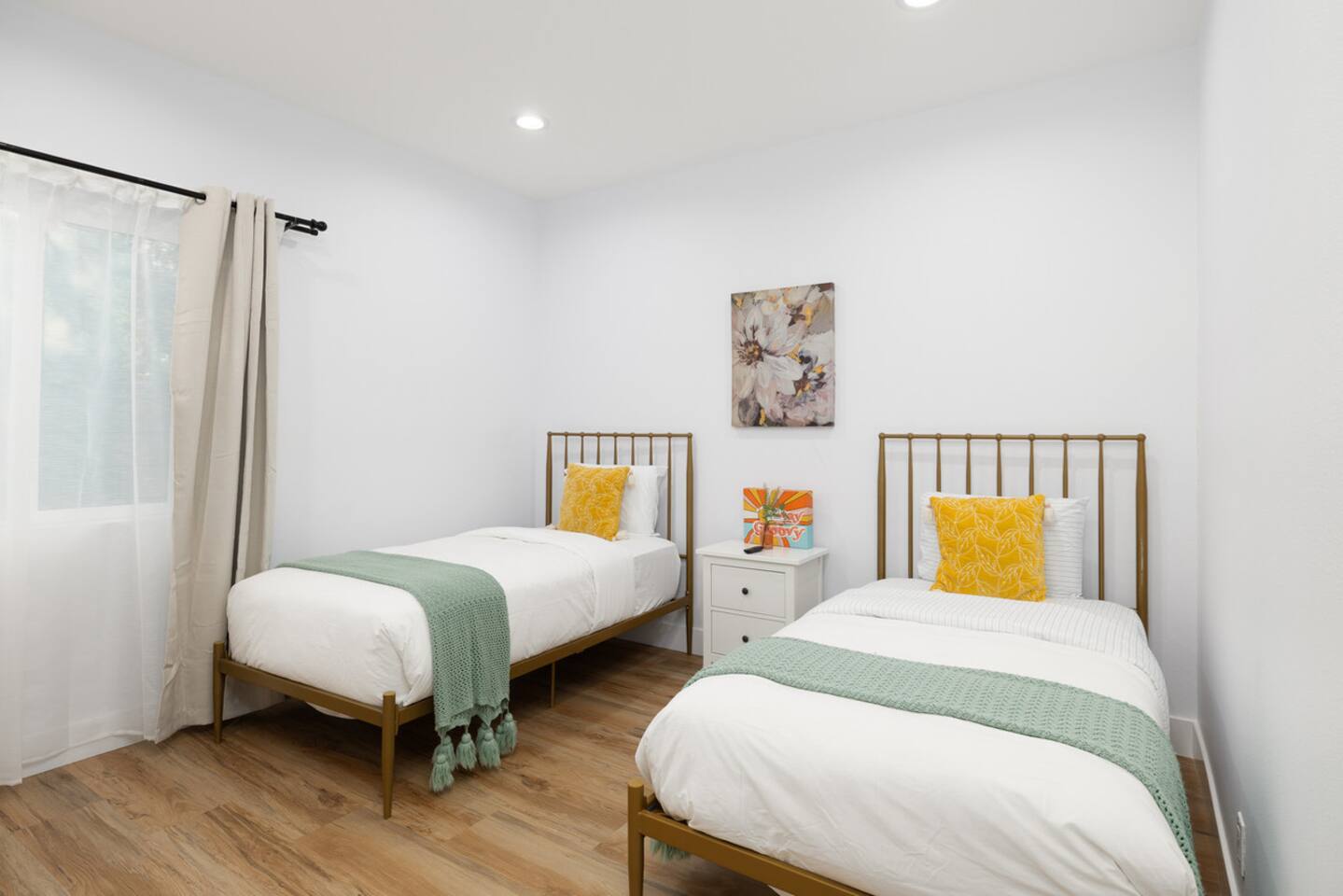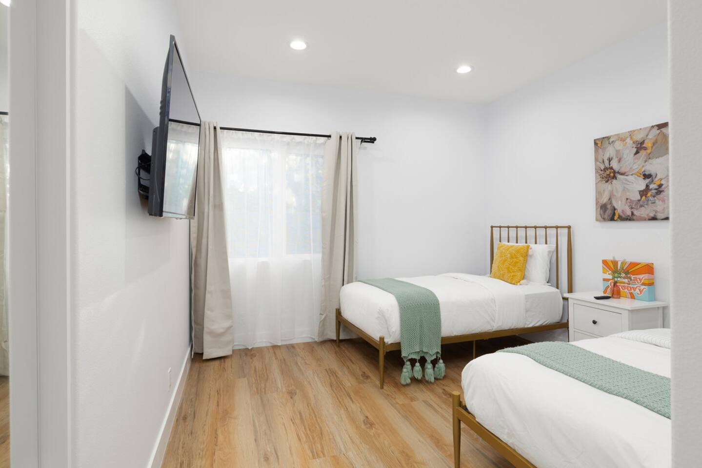- One bedroom with two twin-sized beds + Smart TV