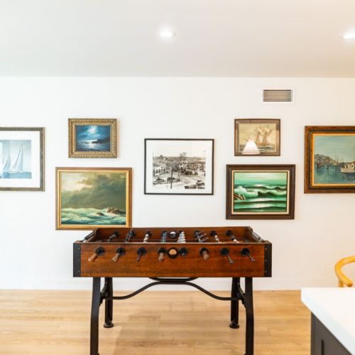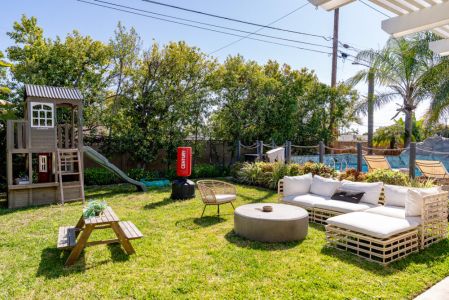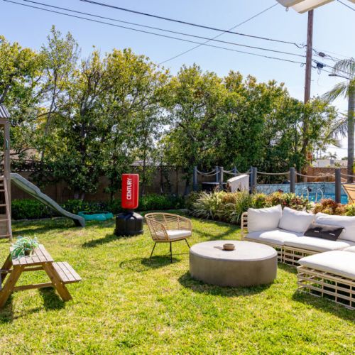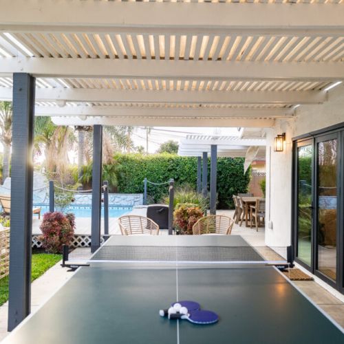 - Foos ball table, ping pong table, and kids play space in the backyard