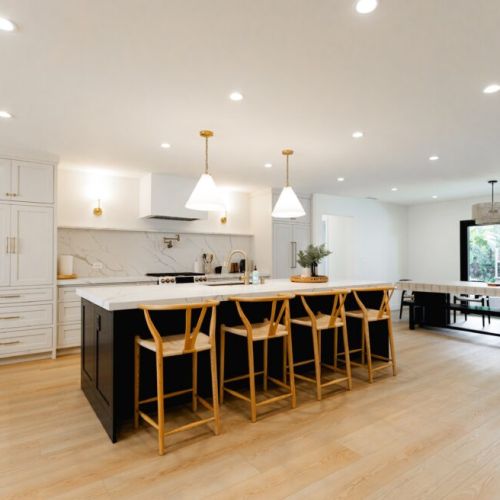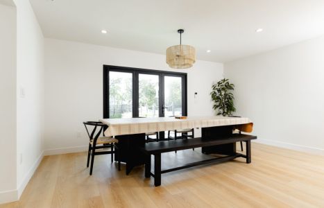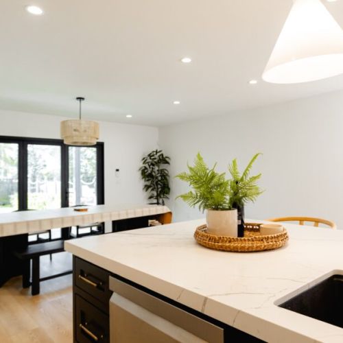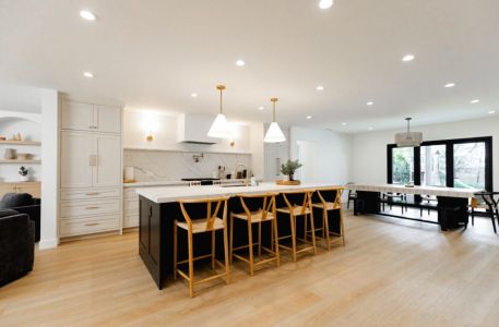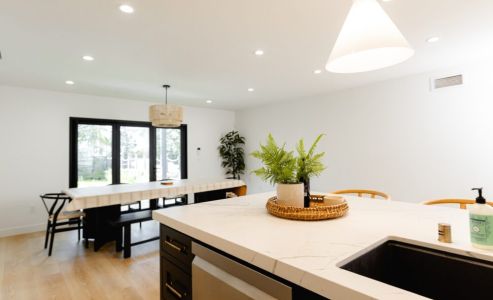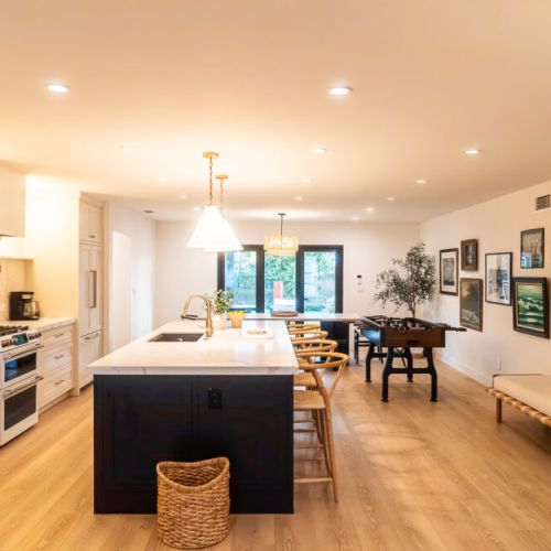 - Open concept kitchen, dining area, and living room