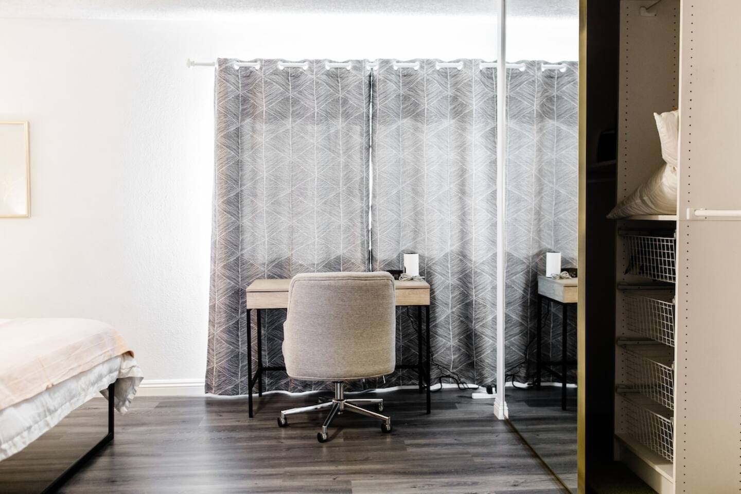 - Work desk and chair in master bedroom