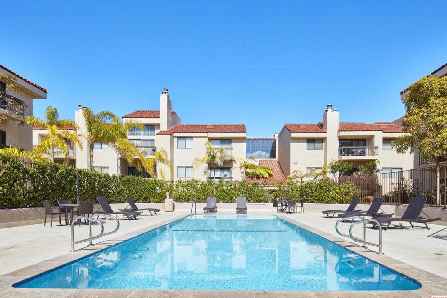 Enjoy the beach lifestyle of Southern California in a modern, upscale, 2 bedroom 2 bath condo with two private patios surrounded by tropical landscaping. The safe and quiet community serves as a perfect retreat from the hustle and bustle or a vacation home! The unit has a gourmet kitchen with ample storage space and high-end appliances. Easy access to gated ground-level parking garage and a dedicated parking space.