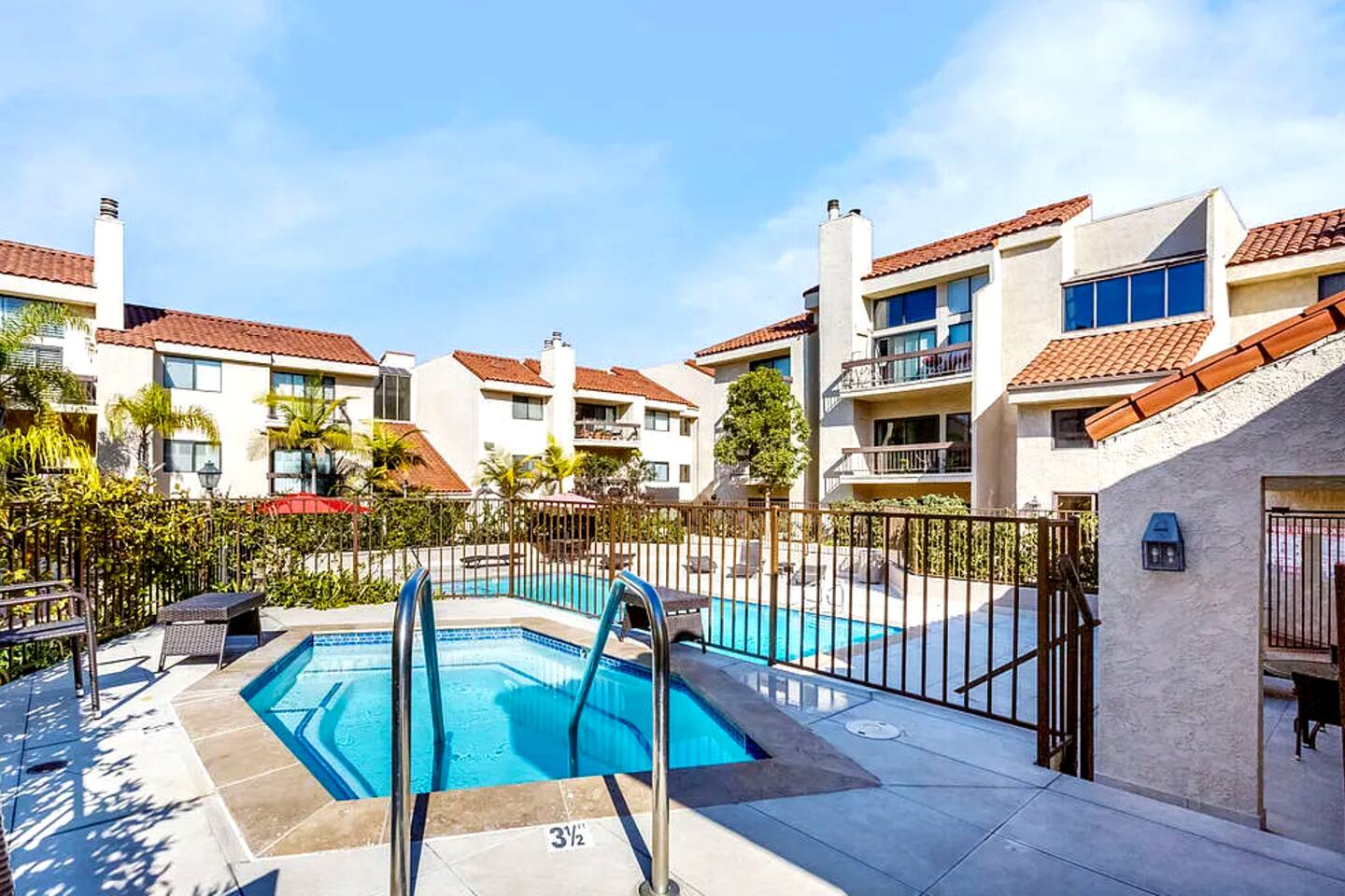 - Private community with outdoor seating areas, sauna, pools, jacuzzis, gym, game room.
