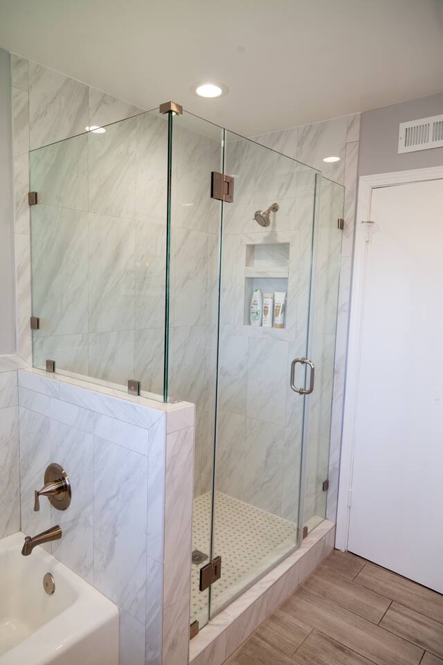 *2 Large walk-in showers w/ 1 bathtub