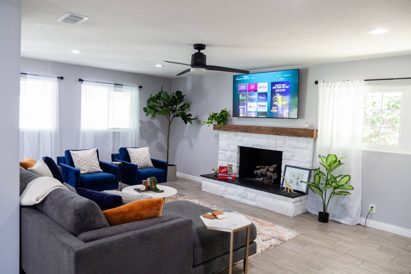 *Jet lag got you down, no problem! All 3 bedrooms include a Roku TV, blackout curtains/blinds and white noise fans, so sleep is an option, day, or night.