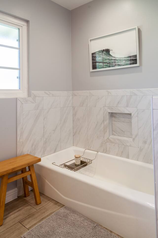There are 2 full bathrooms available; 1 with a walk-in shower and bathtub and 1 with an extra-large walk-in shower. A Blow dryer is included for your convenience.