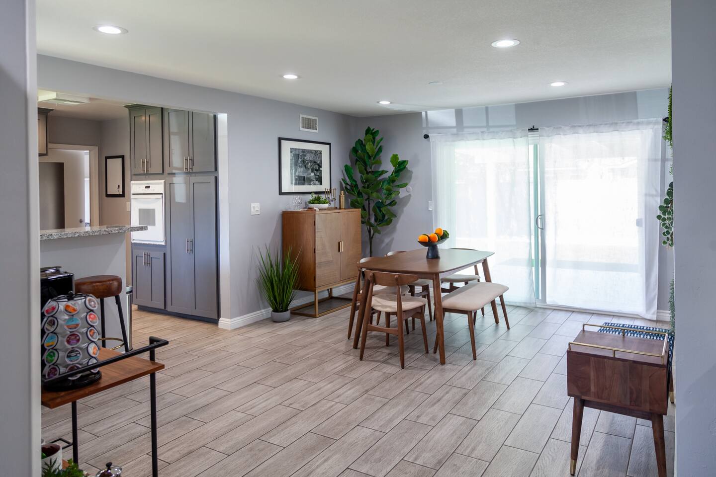 Our charming mid-century modern 1500 sq ft home is the perfect location for Traveling Medical Professionals and Corporate Travelers who are working anywhere in the Orange County area. This is a beautiful fully furnished home with utilities included.