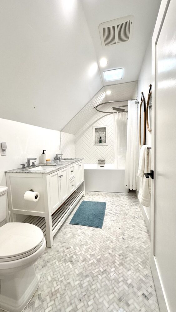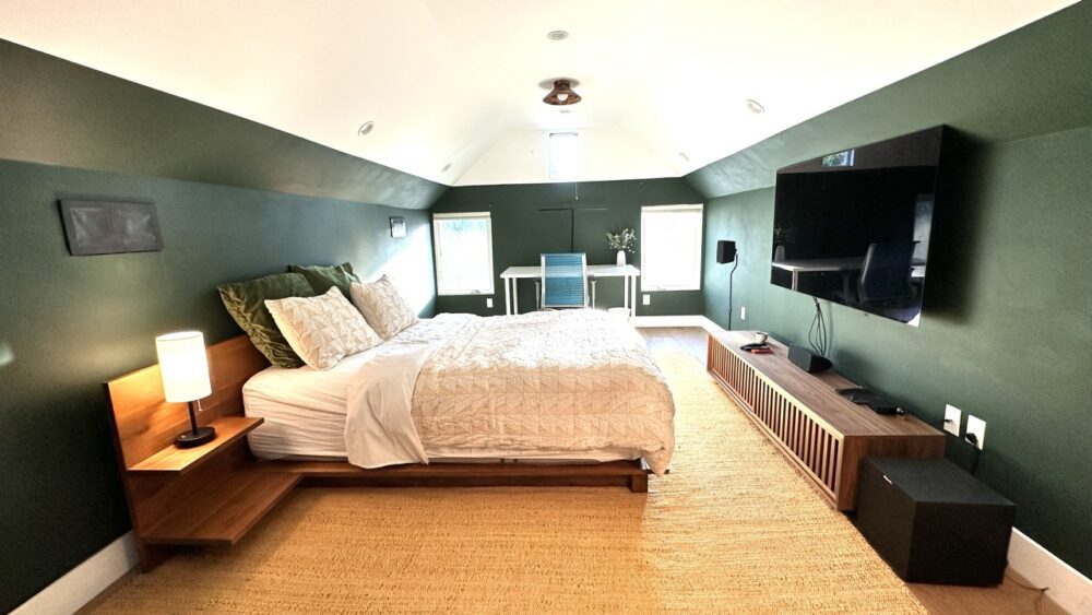 - Ultra private upstairs bedroom with it's own bathroom, large work desk, and smart TV