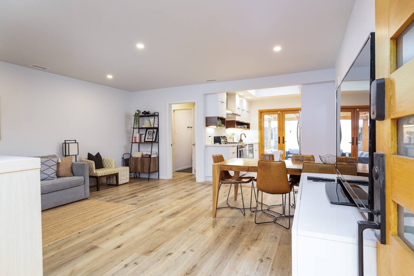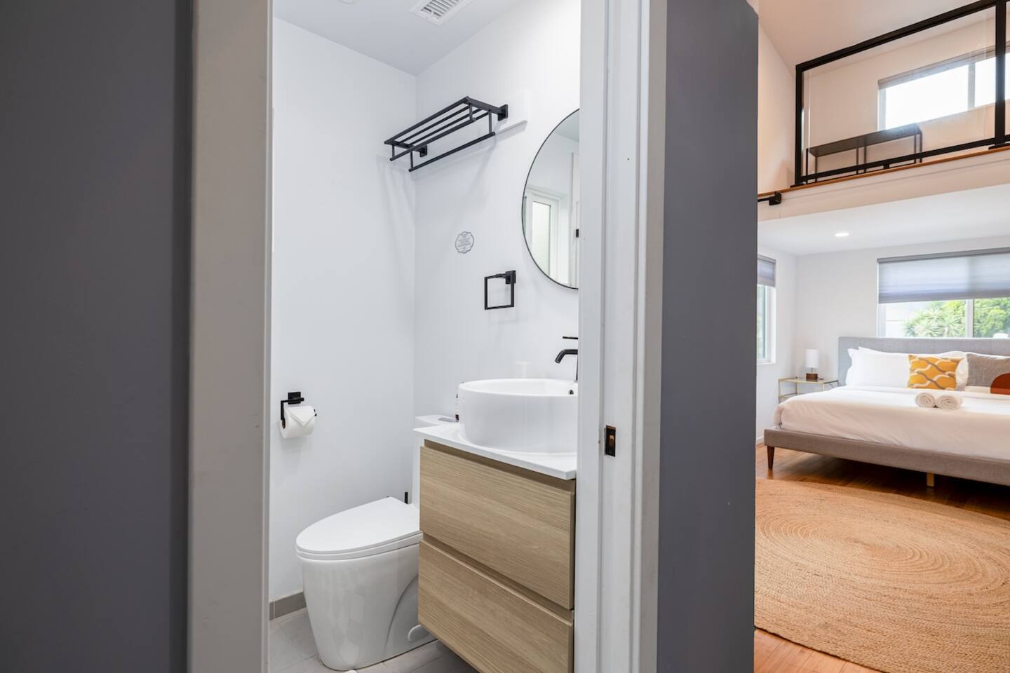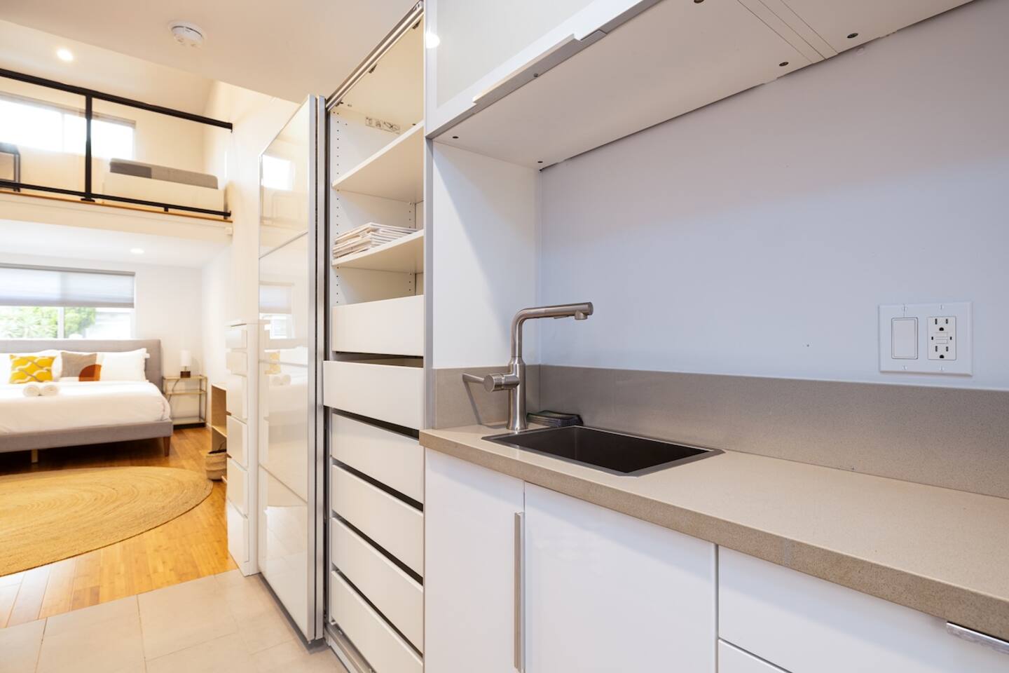 - Master suite with work desk, ensuite bathroom, kitchenette, and direct access to backyard